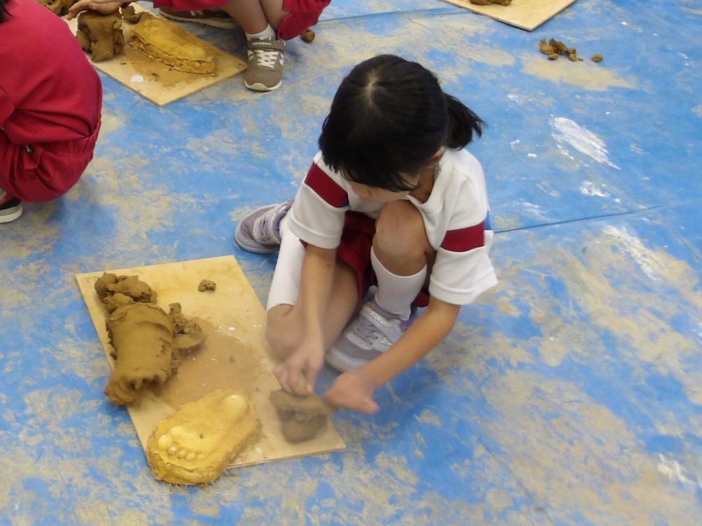 【内容】粘土で足ウラの型をとって、石こうを流し込んで固まったら型を外してできあがり。どんな足型になるかな?