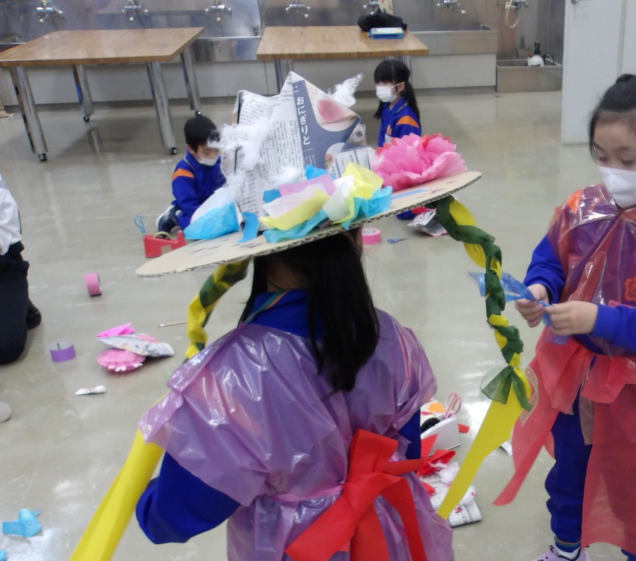 【内容】新聞紙で土台の帽子を作って、折り紙や不織布、紙テープなどで飾りつけをしてオリジナルのおしゃれハットを完成させるよ。時間があったら衣装も作って変身!