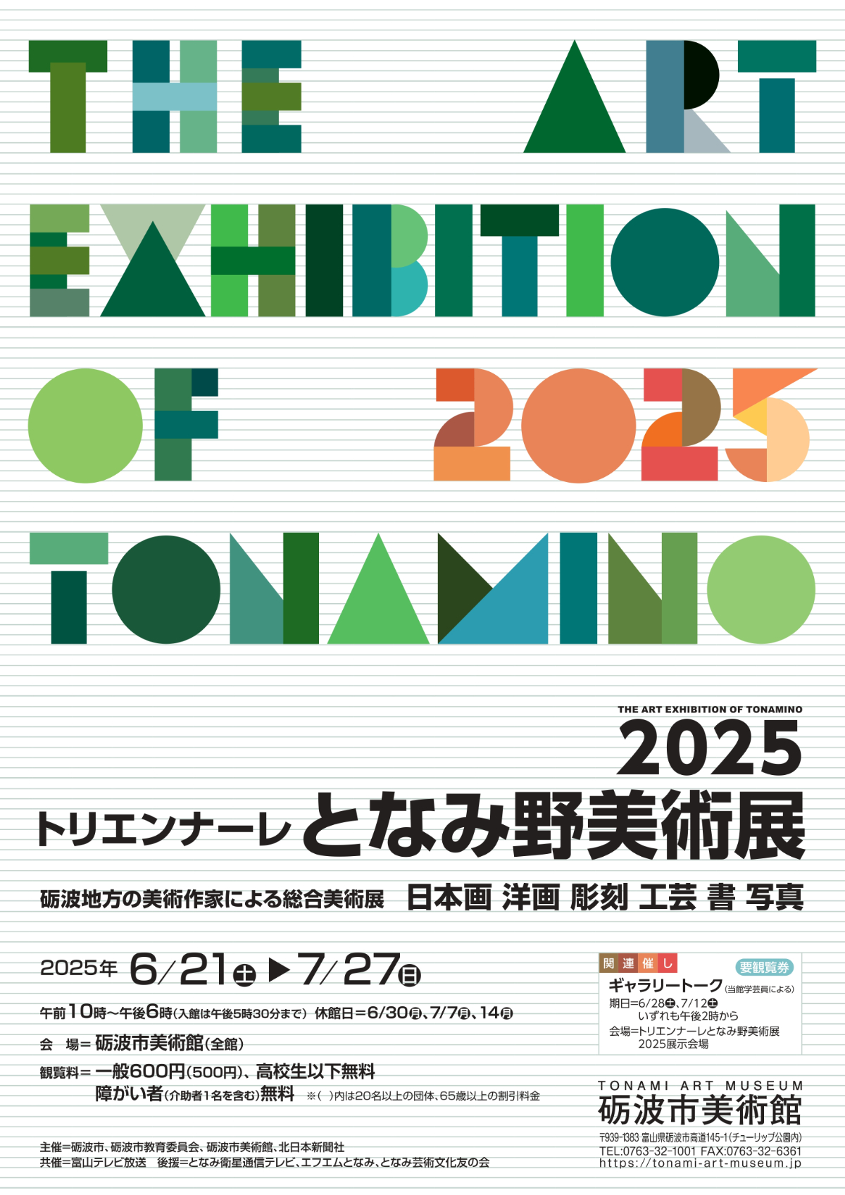 主催 砺波市、砺波市教育委員会、公益財団法人砺波市花と緑と文化の財団・砺波市美術館、北日本新聞社
