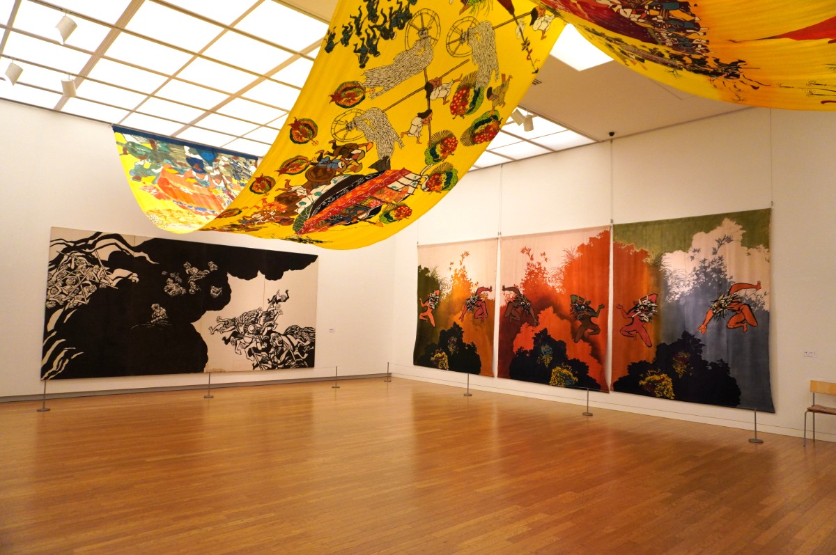 今回のフェア特別展では、染色家・絵本作家のたじまゆきひこ(田島征彦)さんの個展を開催いたします。たじまさんには、昨年秋の「ブラチスラバからやってきた!世界の絵本パレード」で、『なきむしせいとく 沖縄戦にまきこまれた少年の物語』(童心社)の原画を出品いただきました。型絵染による鮮烈な印象が記憶に新しい方も多いのではないでしょうか。